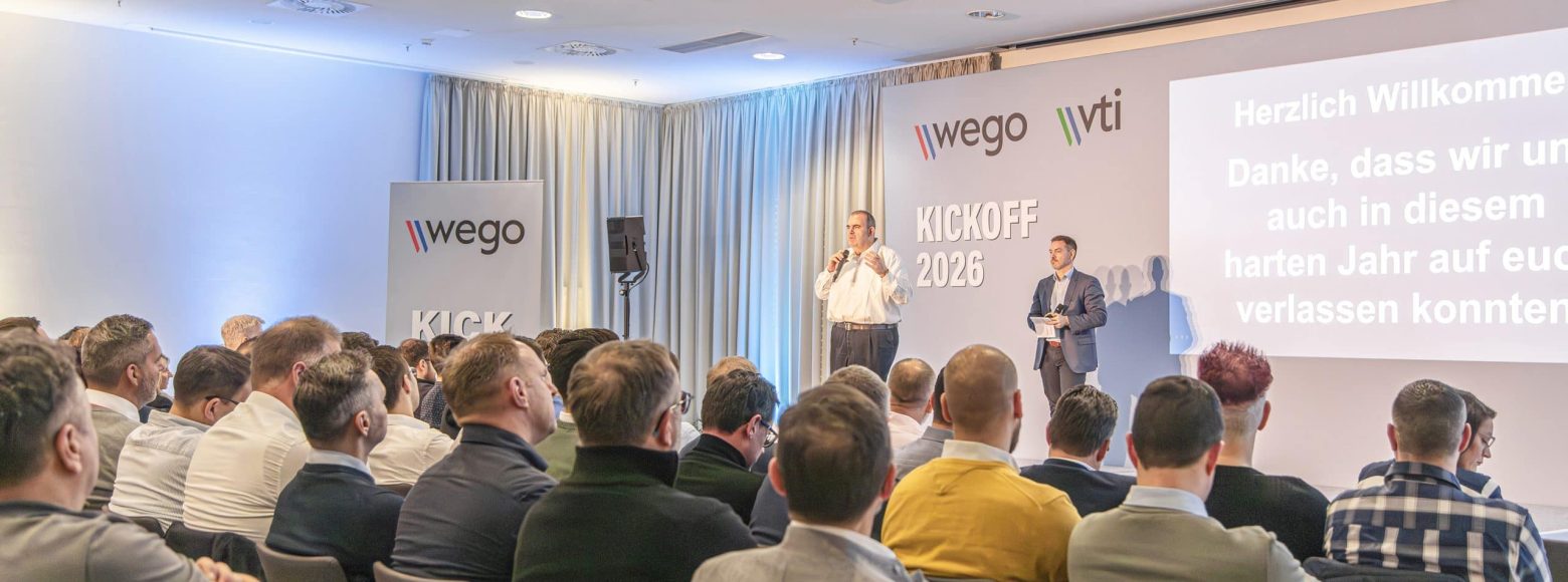 Rund 100 Führungskräfte aus den Niederlassungen und der Hauptverwaltung konnten Alfons Horn, Vorsitzender der Geschäftsführung, und Michael Abersfelder, Geschäftsführer Finanzen, beim traditionellen Kick off von wego vti Ende Januar 2026 in Neuss begrüßen.