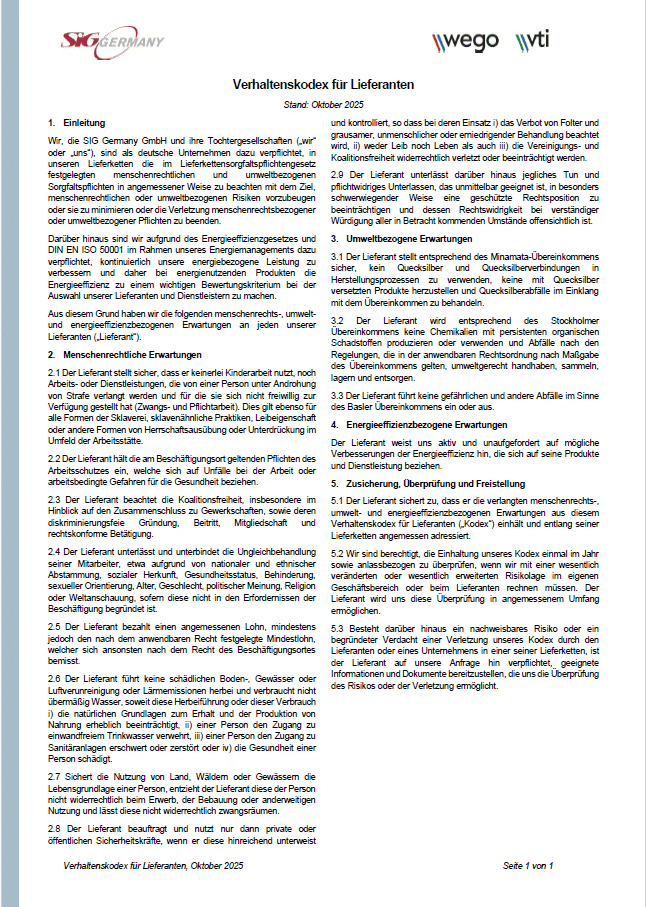 Verhaltenskodex für Lieferanten