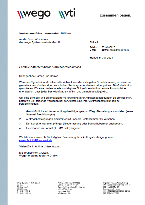 Formale Anforderung für Auftragsbestätigungen