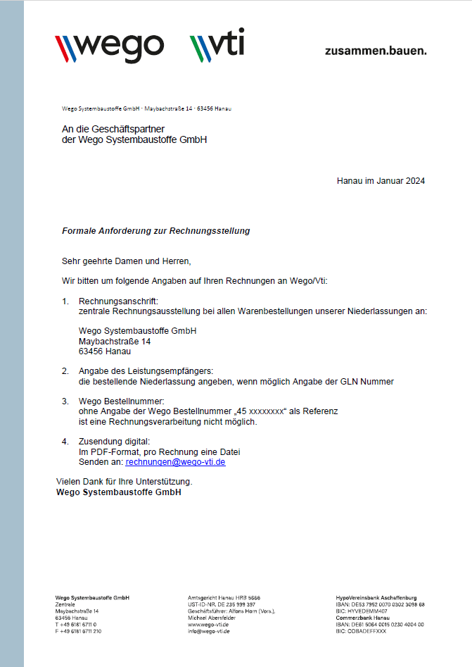 Formale Anforderung zur Rechnungsstellung